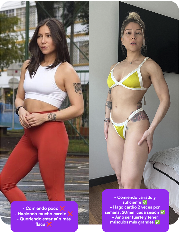 Por muchos años me dejé influenciar por la cultura de las dietas y sometí mi cuerpo a una gran cantidad de torturas que consideraba “normal”. Con el pasar de los años, la experiencia y la educación me enseñaron que nada da mejores resultados que una alimentación saludable, variada y satisfactoria, y que el entrenamiento con cargas (peso) es lo mejor para conseguir resultados corporales en el menor tiempo mientras abrazas el proceso.